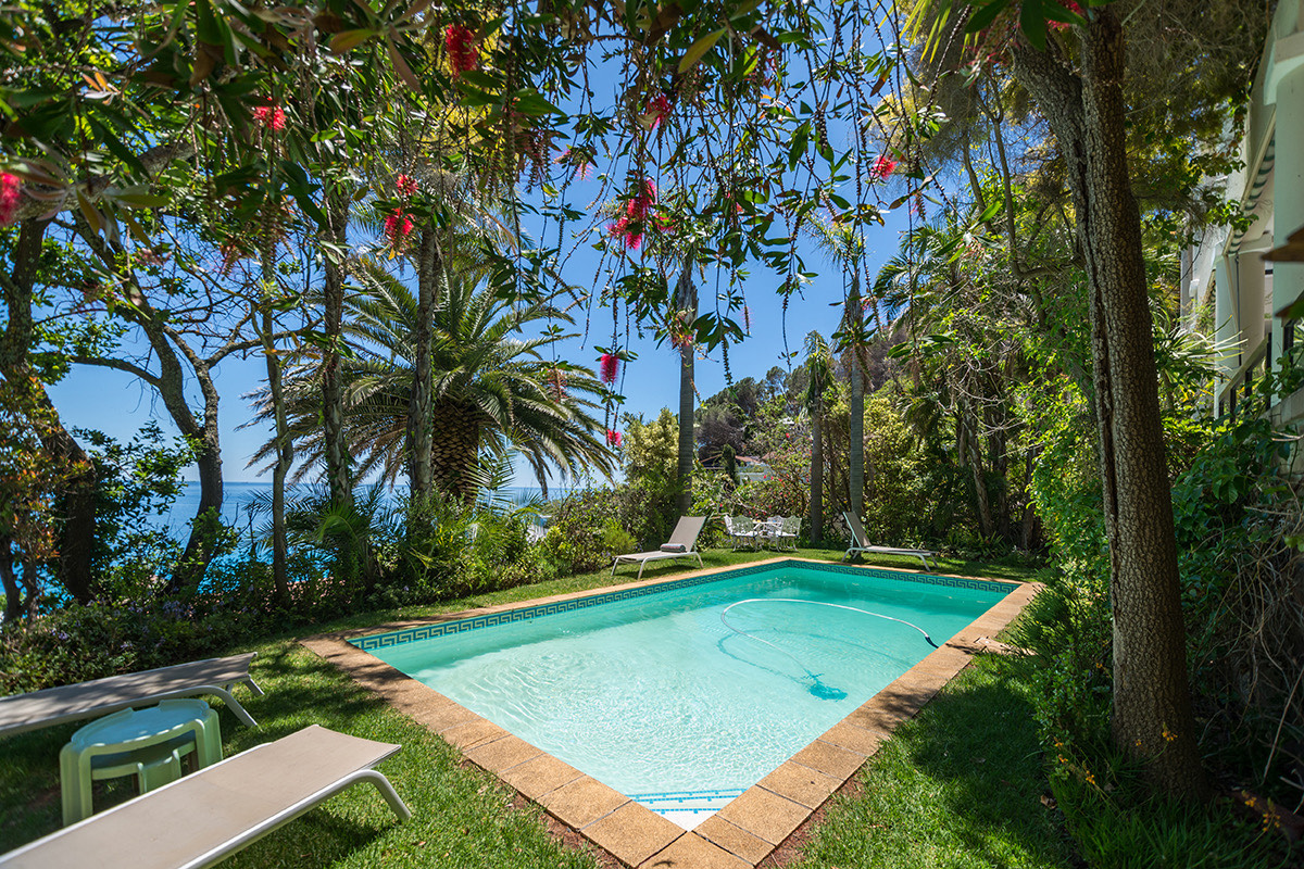 A gorgeous, large swimming pool and outdoor patio with views over Clifton’s 4th beach and the Bay area.